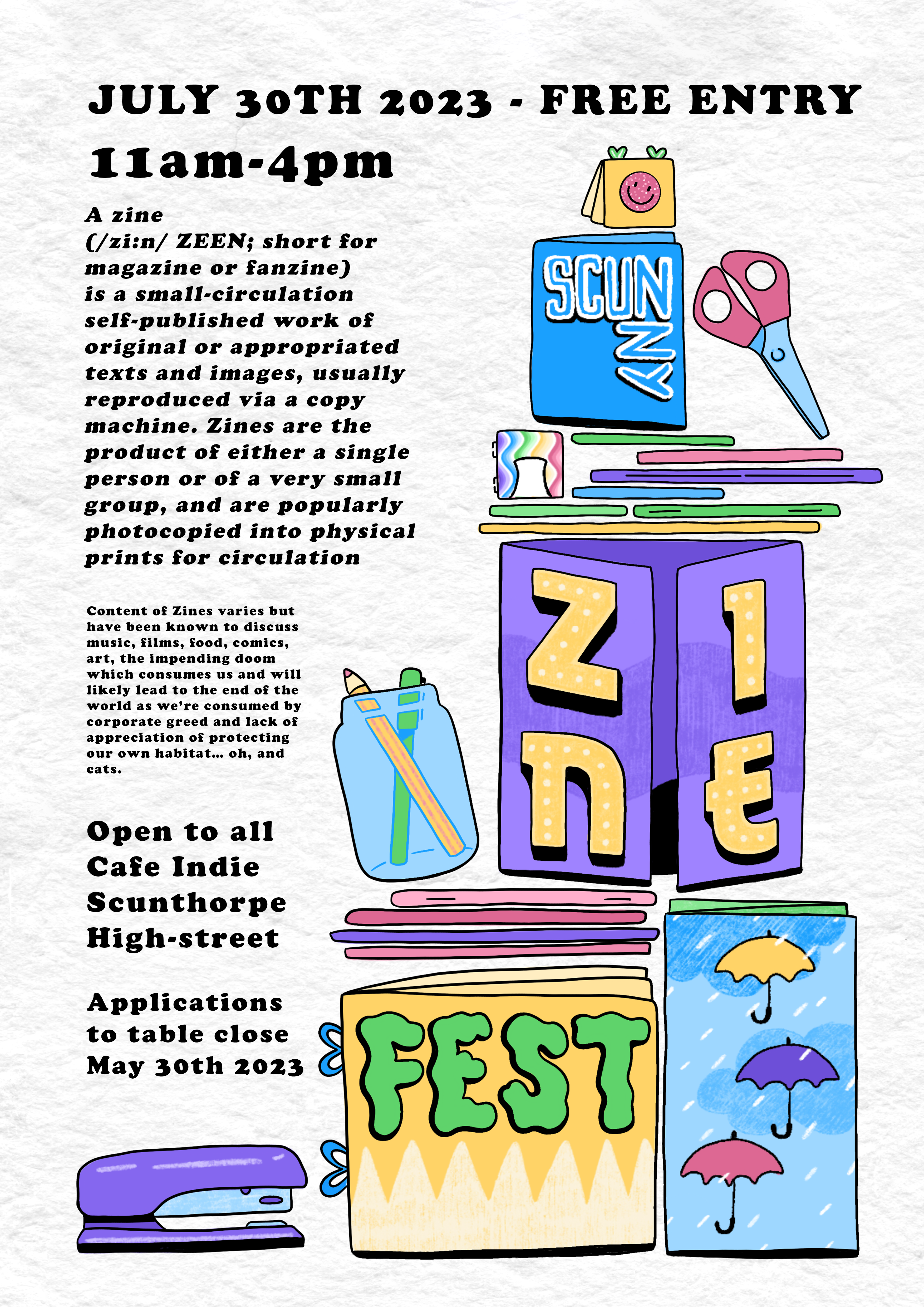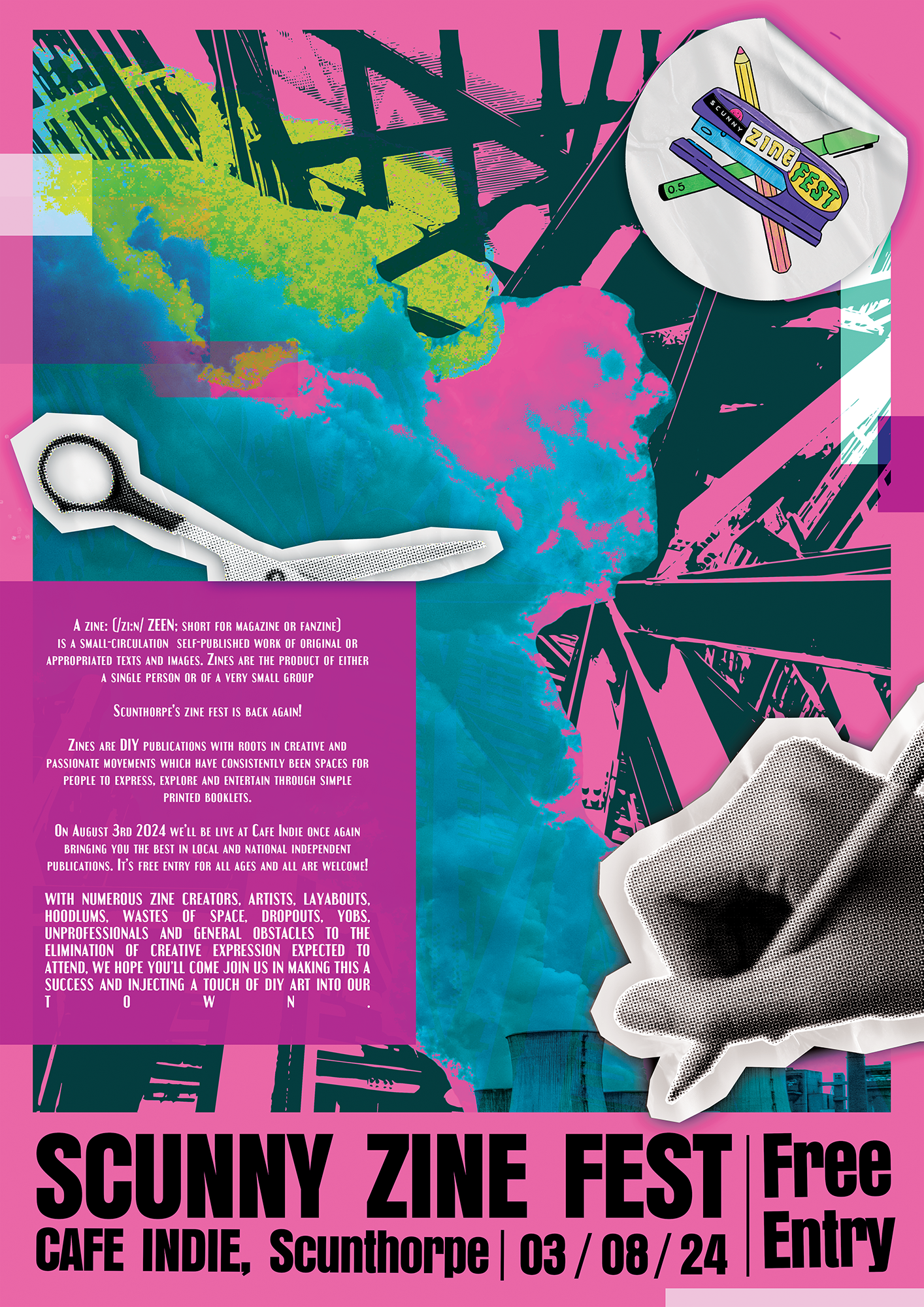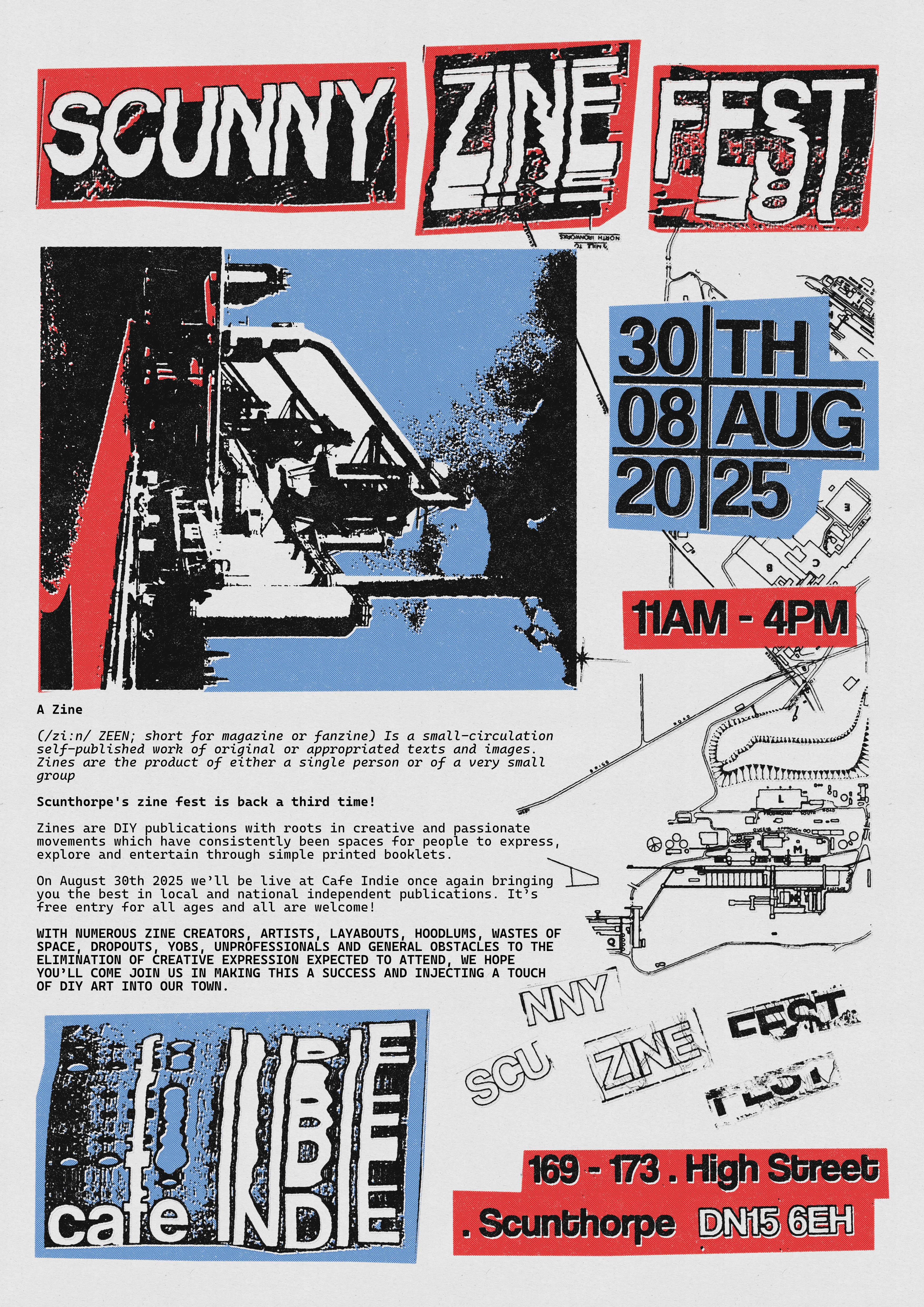 For anyone who doesn’t know, I was born in a small place called Scunthorpe in the north east of England. It’s my home town and even through I have travelled far and now live in the US for work it was my homestead for the formative years of my life. Since 2023 I have been luckily enough to be able to help insitigate, organise and fund a Zine Festival in that location every year since.